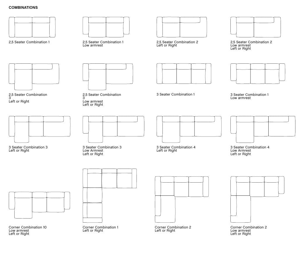 2.5 Seater Combination 2 (Low Armrest) – Left: S1964+S9302 / RightSide: S9301+S1965 – W256.5 data-start\u003d"1472" data-end\u003d"1475">2.5 Seater Combination 3 (Low Armrest) – Left: S8264+S9302 / Right: S9301+S8265 – W256.5 x D135.5 x H67 cm